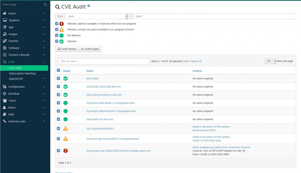 La necesidad de escalar estos requisitos de cumplimiento externos e internos en toda una empresa puede convertirse en una tarea masiva que requiere un tiempo considerable de personal. SUSE® Manager 4 elimina el tiempo y el gasto del seguimiento de cumplimiento al imponer el control de configuración, automatizar la auditoría y la notificación de alertas, bloquear las actualizaciones de paquetes, trabajar con Kernel Live Patching y poner toda la información necesaria a su alcance.