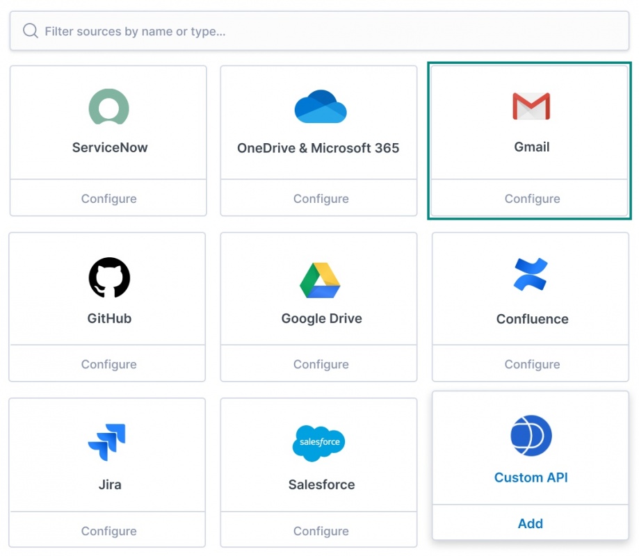 Gmail se une a Google Drive, Microsoft 365, Salesforce, Confluence y una serie de otras integraciones de fuentes de contenido prediseñadas para Workplace Search. Obviamente, Google no se queda atrás en la búsqueda, por supuesto, pero Workplace Search ofrece una única barra de búsqueda no solo para G Suite, sino para una gran cantidad de fuentes, independientemente del origen, el fabricante o el ecosistema. Los usuarios pueden realizar búsquedas sin necesidad de recordar dónde se encuentran esos datos, y verán su propio contenido privado de Gmail junto con todas esas otras fuentes, con la relevancia de la búsqueda sintonizada de inmediato.