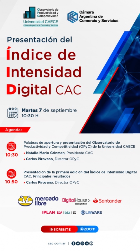 La Cámara Argentina de Comercio y Servicios (CAC), a través del Observatorio de Productividad y Competitividad (OPyC) de la Universidad CAECE, decidió elaborar un Índice de Intensidad Digital, referido a la adopción de tecnologías por parte de las empresas argentinas.