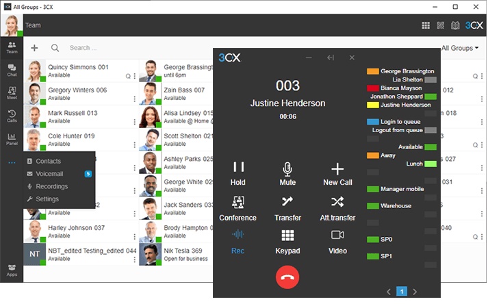 El marcador 3CX ahora incluye un menú BLF que funciona como los botones BLF en un teléfono IP. Controle quién está disponible, transfiera o estacione llamadas o marque rápidamente sus extensiones marcadas con más frecuencia.